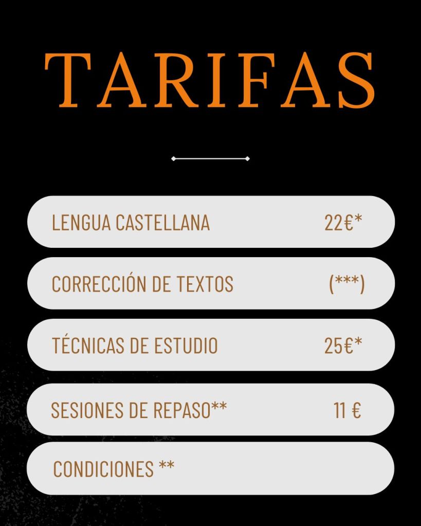 (*) Las clases de Lengua Castellana y Literatura están exentas de IVA si el/la alumno/a está cursando esta asignatura en un plan oficial de estudios o si se está preparando para uno de los accesos a grados medios o superiores.